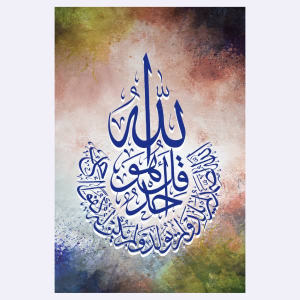 “Abstract Al-Ikhlas” menggabungkan nilai spiritual Surah Al-Ikhlas dengan sentuhan desain abstrak modern – cocok untuk dekorasi islami yang elegan.