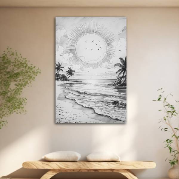 Sebuah karya seni modern yang terinspirasi dari keindahan budaya Bali, menampilkan elemen visual tropis dengan gaya kontemporer.