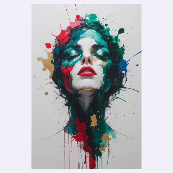 Wajah penuh warna dengan nuansa misterius dan artistik, cocok untuk ruang kreatif atau studio pribadi Anda.