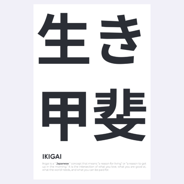 Karya visual “Ikigai” menampilkan filosofi hidup dari Jepang yang bermakna mendalam. Dengan desain elegan dan berkarakter, cocok untuk memperindah ruangan dengan sentuhan budaya dan makna.