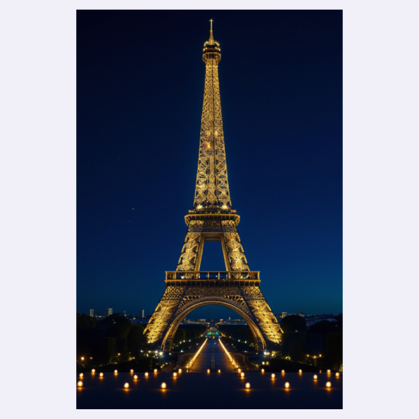 Nikmati keindahan Menara Eiffel di malam hari lewat poster “Paris at Night”. Tampilan elegan dengan nuansa romantis khas kota Paris, ideal untuk dekorasi ruang bergaya modern dan klasik.
